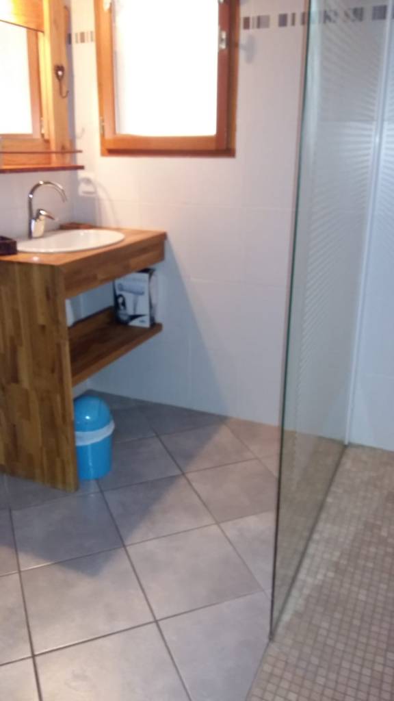une salle de bain composé d’une douche à l’italienne et d’un WC.
