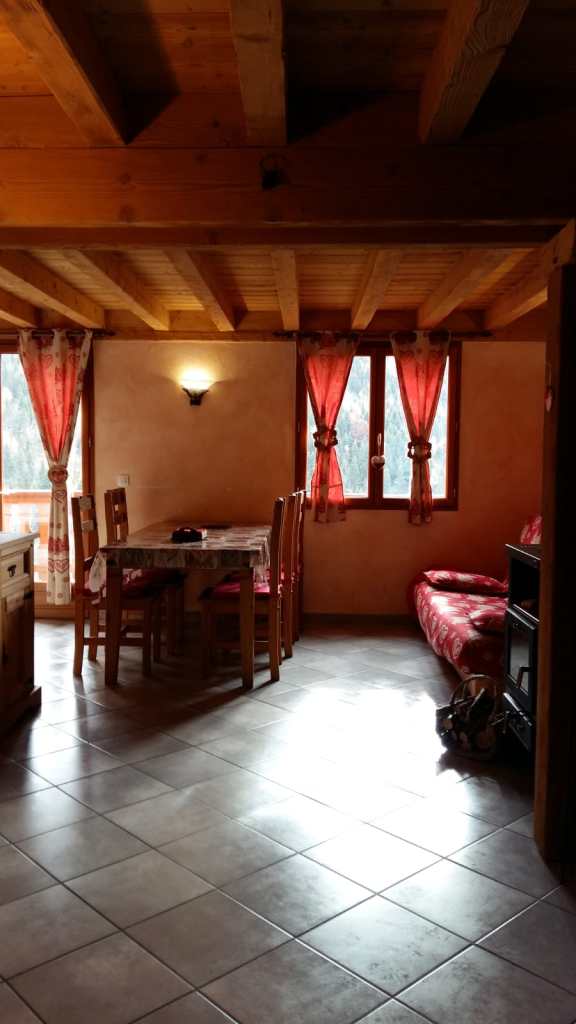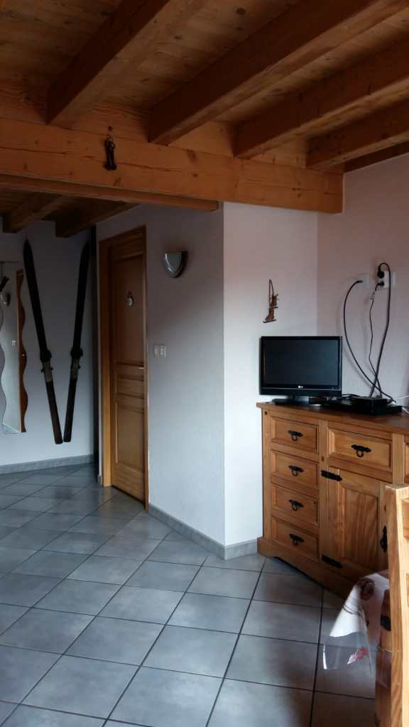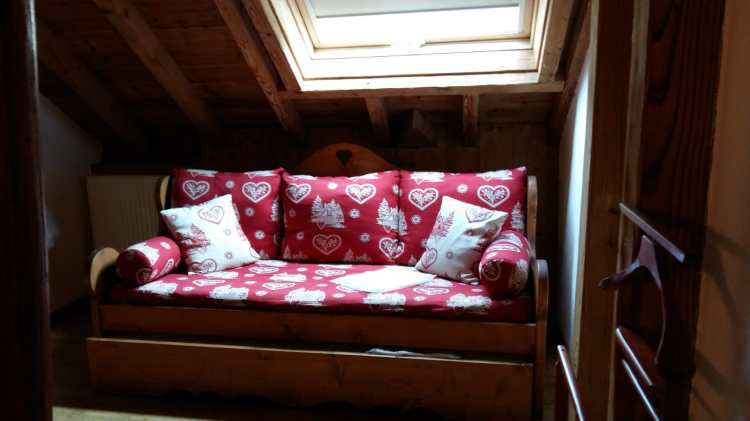 Vous trouverez un séjour, avec un coin salon composé d’un canapé clic-clac,