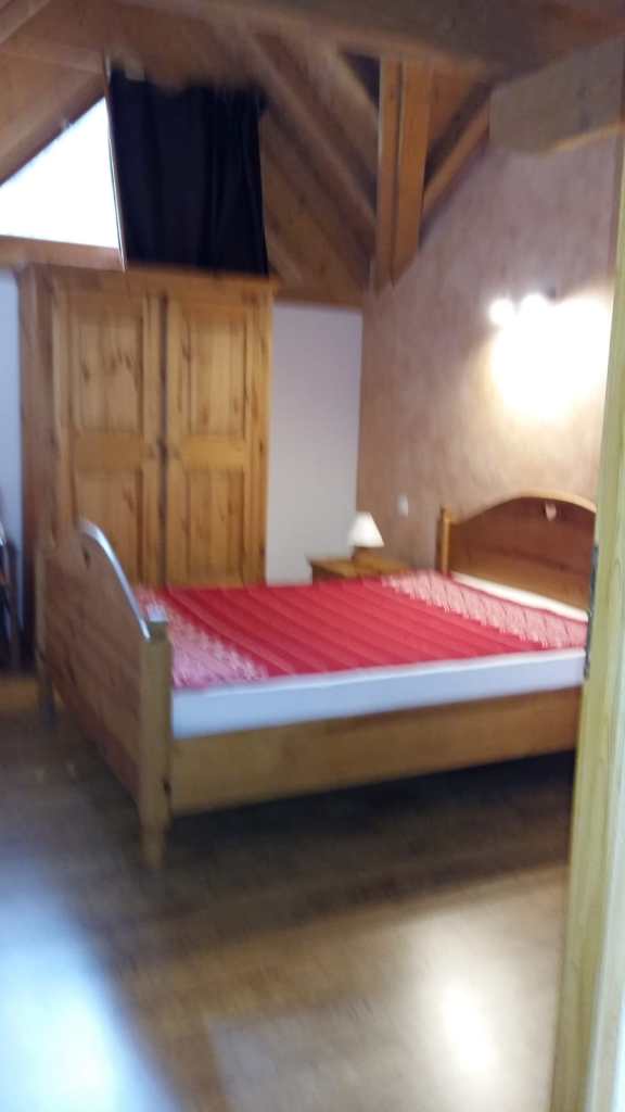 une chambre avec un lit double et un lit gigogne dans coin nuit,